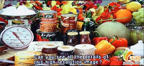 接下來是對(duì)色彩的還原顯示,由于PE8720集成了明基最新的SensEye技術(shù),使其能夠自動(dòng)感應(yīng)并優(yōu)化投影機(jī)的對(duì)比度、銳度以及色彩平衡度等參數(shù)指標(biāo),從而自動(dòng)實(shí)現(xiàn)最優(yōu)質(zhì)的畫面效果。PE8720能夠投影出色彩效果卓越的畫面,在某種程度上也得益于這項(xiàng)智能技術(shù)。通過上圖觀察可以發(fā)現(xiàn),這款機(jī)子在區(qū)分相近顏色時(shí)確有一手,它投影出來的色彩逼真圓潤(rùn),絕對(duì)令人耳目一新。紅色的衣衫與口紅,臉部粉底,以及鮮花都可以近乎于完美的表現(xiàn)出來,而且不用過多的調(diào)試。