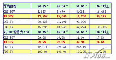 為什么說(shuō)超超大尺寸是MD背投的敵人?我們先看表中列出2005年1月至7月的記錄,我們可以明顯看出在40―45英寸尺寸段,MD背投的銷(xiāo)量份額只有1.6%(此尺寸段的霸主為等離子電視);在45―50英寸尺寸段,MD背投的份額上升到10%(此尺寸段的霸主為CRT背投);在50―60英寸尺寸段,MD背投已形成相對(duì)優(yōu)勢(shì),份額上升到30%(此尺寸段CRT背投仍占56%的分額);在60英寸及以上尺寸段,MD背投就無(wú)人可敵了,其份額達(dá)91%。數(shù)據(jù)證明MD背投尺寸越大,無(wú)論是從價(jià)格還是從銷(xiāo)售量都具有優(yōu)勢(shì),那為何如此高性?xún)r(jià)比的MD背投電視居然遭到冷落。原因是由于住房條件的限制,中國(guó)消費(fèi)者普遍認(rèn)為50寸以上屏幕彩電不適于家庭使用,能買(mǎi)個(gè)42寸左右尺寸的電視,對(duì)家庭來(lái)說(shuō)已經(jīng)很大了。這種概念的普遍存在,使具有絕對(duì)優(yōu)勢(shì)的50寸以上MD背投電視變得英雄無(wú)用武之地。