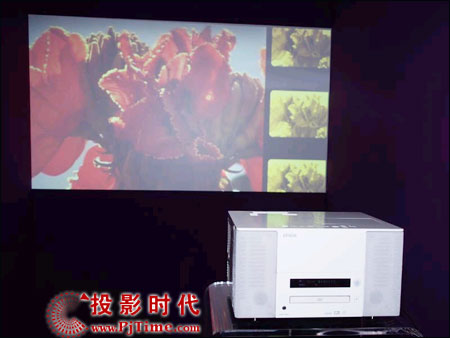 愛普生今年新上市內(nèi)置DVD投影機EMP-TWD1,使用了ALL-IN-ONE的設(shè)計理念。在距離1.5米的墻上可以投背出1.2米寬的圖像,寬屏模式(16:9),圖像比對度為1:1000,最高亮度為1200流明,支持水平、垂直鏡頭切換,附帶兩個10W的高性能音響,低亮模式下工作時,整機噪音(音響除外)低于28分貝(噪音主要是來自風扇)。