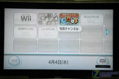開機后,Wii沒有開機動畫,首先是游戲機的提示,之后就會進入到上圖中的系統(tǒng)主界面當中。主機的系統(tǒng)界面是功能窗口式的,可以將一些常用的功能添加到空白的位置上,用主遙控器對準感應條可以對畫面中的指針進行控制,類似鼠標的用法。