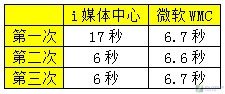 可見WMC在第一次啟動速度上有優(yōu)勢,i媒體中心在第一次啟動時間上落后,第一次之后,i媒體中心略勝WMC,但差距并不明顯,幾乎可以忽略不計!