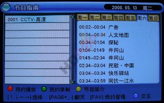 下面是銀河高清機頂盒顯示的CCTV高清EPG信息