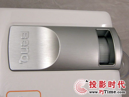 明基MP512ST投影機(jī)機(jī)身細(xì)節(jié)處理非常細(xì)膩,而又具有個(gè)性。與其造型整體的圓概念相得益彰的是機(jī)身頂部面板鏡頭部位的銀灰色凸起,以及鏡頭的魚眼凸起:這些設(shè)計(jì)另整體機(jī)身更具“玩味”感。