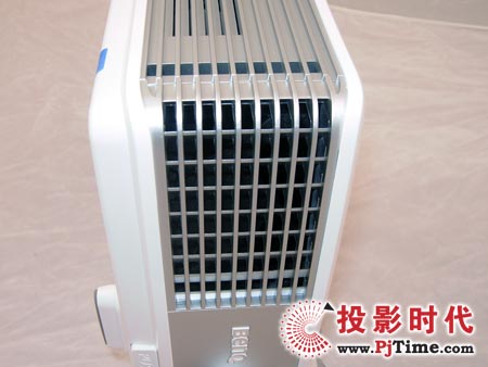 明基MP512ST投影機(jī)前部的出風(fēng)口的縱向分隔采用斜向設(shè)計,可以起到改變出風(fēng)風(fēng)向的作用。