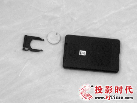 明基MP512ST遙控器設(shè)計輕薄小巧,黑色灰色結(jié)合的色彩,配上小巧的按鍵顯得更加輕薄。遙控器采用氧化銀紐扣電池供電,原配電池采用所料薄膜阻斷板防止電池電量外泄。