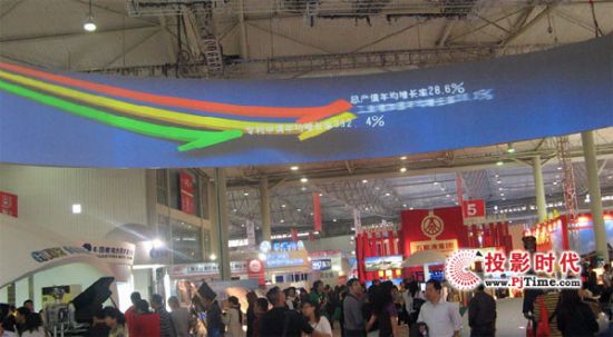 在高新技術(shù)產(chǎn)業(yè)館,一張超大的微晶弧幕格外引人注目,該弧幕幅寬30米,高3米,在展會(huì)現(xiàn)場(chǎng)強(qiáng)烈的燈光的干擾下,仍然顯示出了十分清晰、飽和的圖像。真實(shí)、清晰、震撼的顯示的效果引得無(wú)數(shù)的參觀者駐足仰望,并紛紛對(duì)弧幕的超凡表現(xiàn)嘖嘖稱奇!