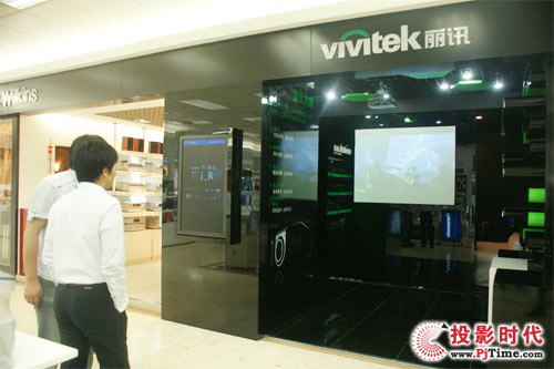 為了能拉近投影機與消費者之間的距離,本周麗訊和愛普生分別在上海和深圳建立了投影機體驗店,讓消費者能更加近距離的了解到投影機。麗訊把位置選擇在了上海浦東新區(qū)大型商城八佰伴。麗訊投影機體驗店位置在八佰伴9層的家電區(qū),數(shù)十平方米的大展廳可分為產(chǎn)品展示區(qū),投影效果演示區(qū),以及活動專柜等不同功能區(qū)。