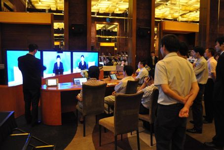 圖為華為全國(guó)巡展廣州站行業(yè)客戶現(xiàn)場(chǎng)體驗(yàn)智真遠(yuǎn)程業(yè)務(wù)演示