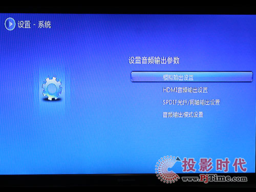 依照慣例,首先需要對(duì)機(jī)器進(jìn)行一下設(shè)置,以便可以與電視機(jī)配合,達(dá)到最佳的音畫質(zhì)效果。設(shè)置菜單中提供了系統(tǒng)、電影、音樂(lè)、圖片、網(wǎng)絡(luò)、共享等設(shè)置選項(xiàng)。其中,電影、音樂(lè)、圖片設(shè)置主要是對(duì)循環(huán)、自動(dòng)播放及瀏覽方式的設(shè)定。