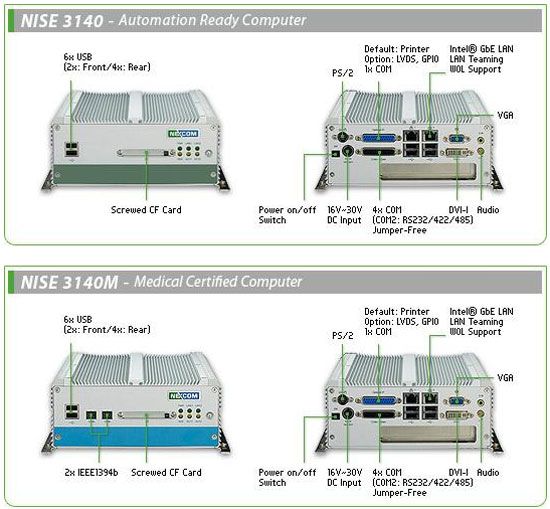 NISE 3140 無風(fēng)扇工業(yè)計算機除了是高性能平臺,還是可升級的,支持多種不同的CPU: Intel® Core™ 2 Duo,Celeron® M CPU及可達2.4GHz, 3M Cache和1066MHz..