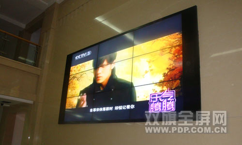 用于內(nèi)部信息發(fā)布的一組,采用了唯瑞(Vewell)的46寸超窄邊拼接單元V46-SN21L,擁有1366×768的分辨率,700cd/m2的亮度,3000:1的對比度,共采用了9塊V46-SN21L,組成一幅3×3的液晶拼接墻。