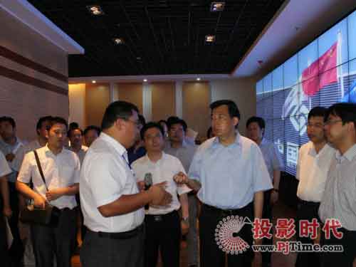隨后,江蘇宜興經(jīng)濟開發(fā)區(qū)黨工委書記、管委會主任朱曉曄借助江蘇清投的 DLP展廳的大屏幕,向宜興市市委書記王中書、宜興市市長張立軍匯報了園區(qū)內(nèi)各重點項目、重點企業(yè)的建成情況。匯報工作得到了各領導的大力贊揚。