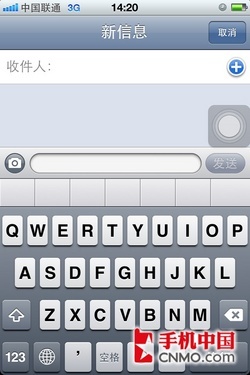 蘋果iOS在短信輸入方面與上代產(chǎn)品沒有太多區(qū)別, 依舊支持Qwerty鍵盤,數(shù)字鍵和手寫輸入法。用戶如果需要創(chuàng)建新信息,只需單擊屏幕右上角的按鍵即可跳到短信輸入界面。當(dāng)用戶需要刪除信息時,只需在 信息上輕輕橫向滑動,右側(cè)就會出現(xiàn)刪除的提示,如果用戶需要批量刪除,就點(diǎn)擊屏幕左上角的編輯圖標(biāo),每條信息左側(cè)就會有紅色的提示,選擇完畢后點(diǎn)右上角的 紅色刪除按鍵即可。