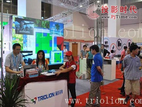 這次參展彩訊科技除了展示了IPAD無線控制系統(tǒng)外,還展示了一套其最新推出的高亮長效激光光源的DLP拼接墻,DLP拼接墻憑借清晰細膩的圖像,良好的動態(tài)效果顯示,銳利的色彩,吸引了眾多參觀者駐足觀看,也獲得不少參觀者的贊嘆。