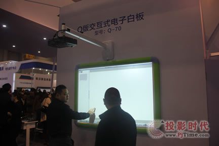 除數(shù)字課堂外,海亞還展出了光學(xué)觸控液晶一體機(jī)、電磁/紅外/光學(xué)電子白板等,另外全新推出的Q版光學(xué)電子白板在此也受到廣泛關(guān)注。