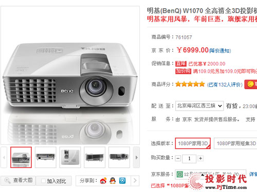 直降2000元 明基W1070全高清3D家用投影機(jī)最新價(jià)