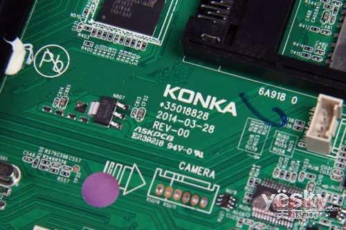 這塊主板上印有康佳的LOGO,以及日期等,PCB板生廠商是ASKPCB(深圳奧士康)。