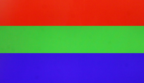 通過三原色測(cè)試卡觀看實(shí)際情況能夠看出,酷開A43液晶電視的三原色色彩純度較高,但在藍(lán)色色彩的表現(xiàn)上比綠色和紅色要稍弱。