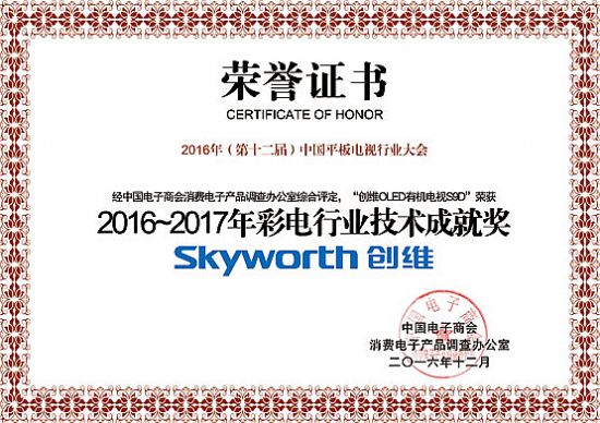 此次創(chuàng)維攜兩款高端電視新品亮相,分別是創(chuàng)維OLED有機電視S9D系列和創(chuàng)維中國夢·Q8系列。經(jīng)檢測,這兩款電視的綜合實力表現(xiàn)優(yōu)秀,均得到專家們的一致認(rèn)可。其中創(chuàng)維S9D榮獲“2016~2017年彩電行業(yè)技術(shù)成就獎”,創(chuàng)維55Q8榮獲“2016~2017年平板電視十大精品”獎。