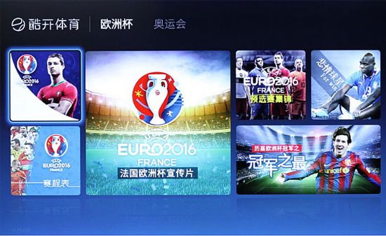 酷開體育主界面,分為歐洲杯和奧運會兩個專欄