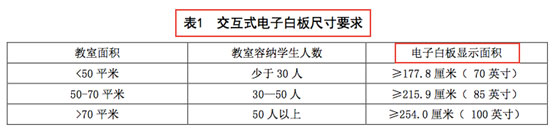 首先從教育部行標的定義來看,原文件多處明確將交互式電子白板和大屏一體機區(qū)分為兩類產(chǎn)品,也寫明是“交互式電子白板尺寸要求”,因此可見此處電子白板尺寸要求是不包括大屏一體機的,我們不能將電子白板和大屏一體機尺寸標準混為一談,造成錯誤的解讀。