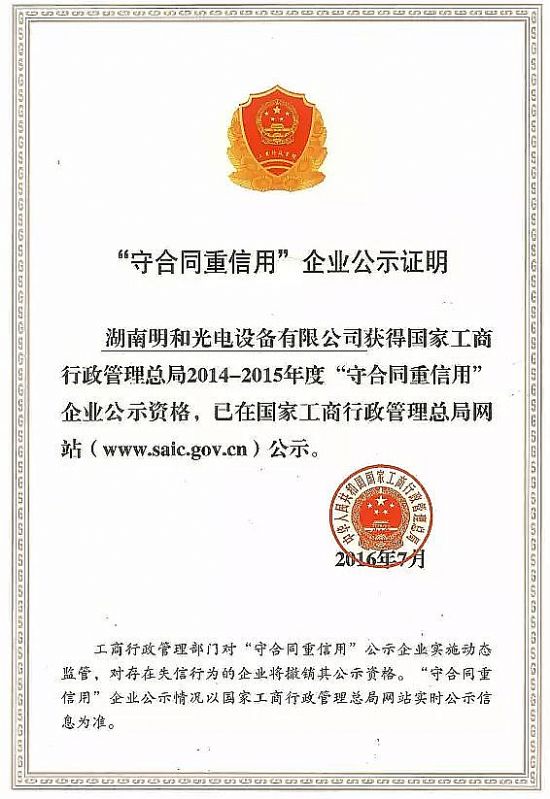 明和榮獲國家級“守合同重信用企業(yè)”評定