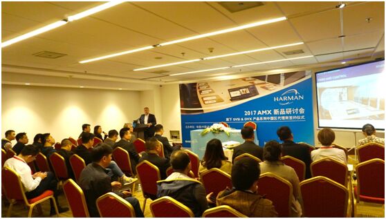 鴻合科技董事副總裁尹立斌先生,解決方案事業(yè)本部副總經(jīng)理韓道勇、徐偉先生,哈曼專業(yè)音視系統(tǒng)事業(yè)部企業(yè)戰(zhàn)略商務(wù)部高級副總裁Kevin Morrison, 哈曼(中國)專業(yè)音視系統(tǒng)事業(yè)部副總經(jīng)理兼銷售總監(jiān)陸大為先生一同出席,與AMX一級二級代理商、合作伙伴及專業(yè)媒體共同見證了這一重要時刻。