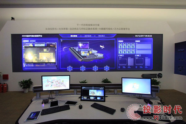 該方案由長(zhǎng)效投影機(jī)、無縫光學(xué)屏幕、自動(dòng)色彩幾何校正融合系統(tǒng)、大數(shù)據(jù)可視化和萬力云管理平臺(tái)組成。長(zhǎng)效投影機(jī)滿足低成本7*24運(yùn)營(yíng)需求;無縫光學(xué)屏幕提升視覺體驗(yàn),并大大節(jié)省空間;自動(dòng)色彩幾何校正融合系統(tǒng)滿足畫面快速融合,一鍵校正;大數(shù)據(jù)可視化滿足數(shù)據(jù)一體化展示和開窗展示;萬力云管理平臺(tái)將其網(wǎng)絡(luò)化,增強(qiáng)協(xié)同功能,降低了運(yùn)營(yíng)成本,提高管理效率。