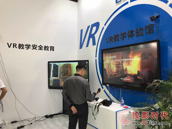 這種前沿科技與教育產(chǎn)業(yè)的深度融合,也正是符合了我國教育十三五規(guī)劃提出的建立產(chǎn)教融合、科教融合的協(xié)同培養(yǎng)機制的導向。同樣的,當前行業(yè)熱門的VR虛擬現(xiàn)實技術也在創(chuàng)維群欣光電落地。本次展出的VR沉浸式教育成為創(chuàng)維展位的吸睛亮點。