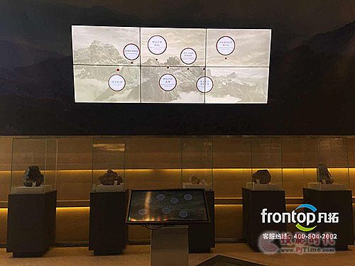凡拓創(chuàng)意在三面墻上的數(shù)十米長卷上,放置六塊移軌觸控屏,組成大型滑屏體驗(yàn)空間,展示由古至今的地殼變化。多點(diǎn)感應(yīng)、同步畫面信息,讓參觀者可以在屏幕上自主選取相關(guān)信息,增加互動(dòng)趣味性。