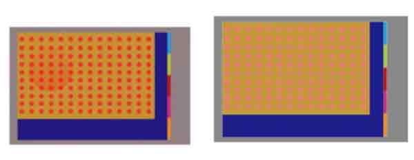 Viamax(緯而視科技)鉆石硬屏特殊的封裝工藝是把發(fā)光芯片封裝在PCB板上,所以散熱是直接通過PCB板和外鋁殼散熱,熱量很容易散發(fā),這種依靠PCB板和箱體同步均勻的散熱方式,整屏溫度控制在45℃-49℃,故而避免了高熱而產(chǎn)生的亮度衰減系數(shù)減小,大大延長了LED顯示屏壽命,長時間使用后還能保持較好的一致性。