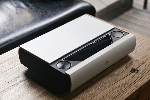 激光電視從某種程度上來說,也是智能投影的一種,但與普通智能投影不一樣的是,激光電視可以貼墻放置,即放置在電視柜上就能投射出超過100英寸的巨幕,沒有房間縱寬限制。