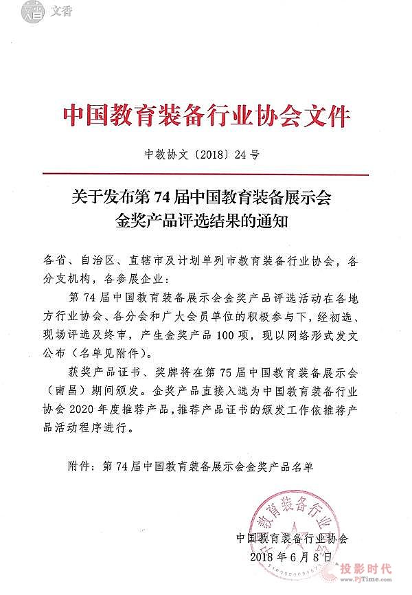 6月8日,中國教育裝備行業(yè)協(xié)會發(fā)布了《關(guān)于發(fā)布第74屆中國教育裝備展示會金獎產(chǎn)品評選結(jié)果的通知》,經(jīng)中國教育裝備行業(yè)專家評委網(wǎng)上初評、現(xiàn)場評選及終審,北京文香榮獲第74屆中國教育裝備展示會金獎,同時入選為中國教育裝備行業(yè)協(xié)會2020年度推薦產(chǎn)品。