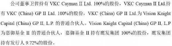 鷹發(fā)集團是在英屬維爾京群島成立的境外投資主體。從鷹發(fā)集團的股權(quán)結(jié)構(gòu)來看,嘉御基金II對其持股100%,層層穿透后衛(wèi)哲為最終受益人。