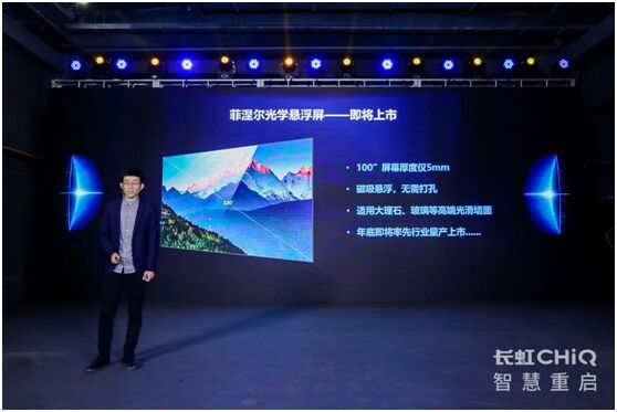 據(jù)康健博士透漏,長虹在光學(xué)屏幕方面不斷突破創(chuàng)新,今年年底將推出行業(yè)首款菲涅爾懸浮屏,100吋屏幕厚度僅5mm,薄如刀鋒,輕似蟬翼,可直接吸附在大理石、玻璃等光滑墻面。