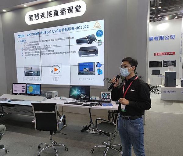 ATEN工作人員通過(guò)智慧連接直播課堂,全面介紹了關(guān)于ATEN公司產(chǎn)品以及智能化運(yùn)維解決方案,以及ATEN UC9040/3022等網(wǎng)紅直播設(shè)備的實(shí)際應(yīng)用場(chǎng)景,準(zhǔn)確集中的展現(xiàn)了ATEN的技術(shù)創(chuàng)新實(shí)力。