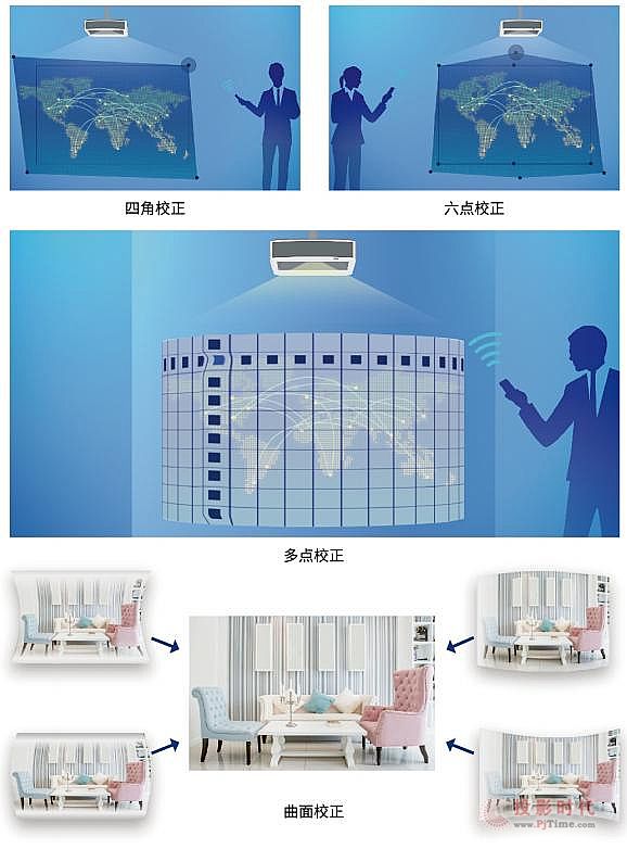 而且PJ RW5500UST/RU5500UST還支持在弧形、弧幕等曲面上進行投射,無論在什么樣的展示場景下,都可以輕松進行畫面投射,使用更加便利。相對于一般商教或者家用投影機,PJ RW5500UST/RU5500UST的畫面校正功能更加齊全,也凸顯出其對于特殊場景投影需求的強力應變能力。