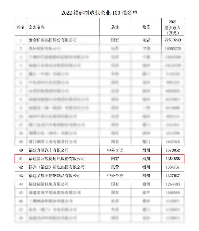星網(wǎng)銳捷四度蟬聯(lián)福建制造業(yè)企業(yè)100強