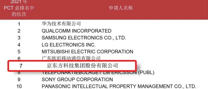 2022年,京東方技術創(chuàng)新實力屢獲全球權威機構認可,專利服務機構IFI Claims發(fā)布的2021年度統(tǒng)計報告中,京東方位列美國專利授權排行榜全球第11位,連續(xù)4年躋身全球TOP20;世界知識產權組織2021年專利申請榜中,京東方以 1980件PCT專利申請量位列全球第七,連續(xù)6年進入全球PCT專利申請TOP10。