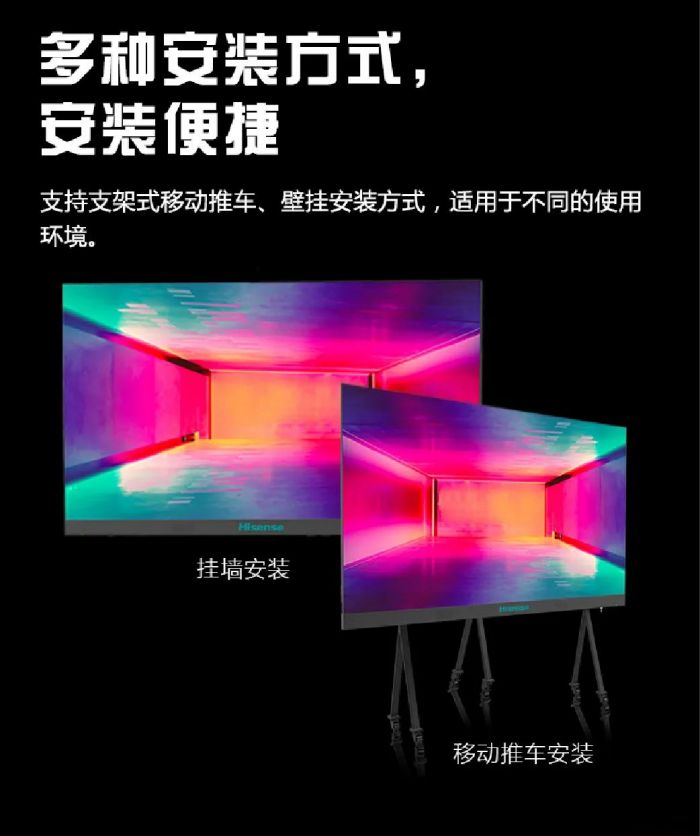 支持支架式移動(dòng)推車、壁掛安裝方式,適用于不同的使用環(huán)境。
