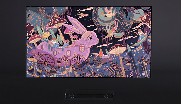 畫作中,現(xiàn)實被解構(gòu)和重新想象,以深刻的方式進行傳達,并捕捉觀眾的想象。而當短片中曾奕心的畫作出現(xiàn)在“無縫貼墻”的創(chuàng)維壁紙電視中時,創(chuàng)維壁紙電視憑借優(yōu)秀的畫面表現(xiàn),將色彩描摹出了斑斕之狀,也將插畫家想象派的設(shè)計活靈活現(xiàn)地躍然于壁紙電視的畫面之上。
