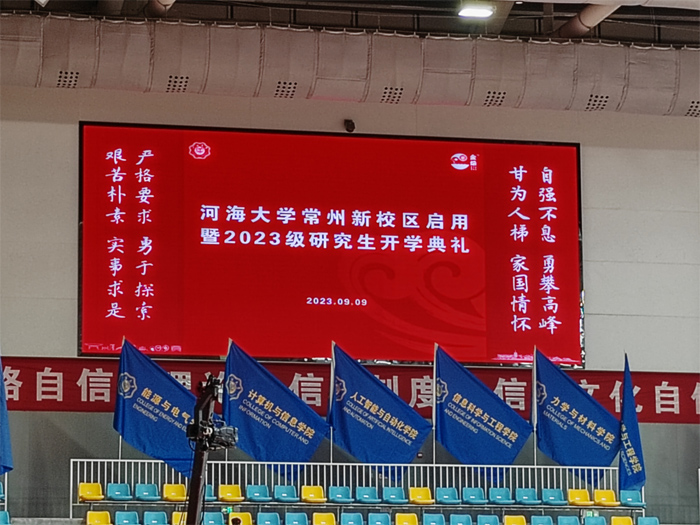 9月9日上午,在洲明LED的見證下,河海大學(xué)常州新校區(qū)啟用暨2023級研究生開學(xué)典禮在體育館舉行。無縫拼接、超廣視角的產(chǎn)品特性,使全場約5000人在任何角落都能感受超清視效體驗。
