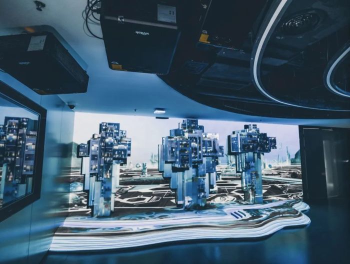數(shù)字長(zhǎng)寧體驗(yàn)館作為未來數(shù)字化城市映射在當(dāng)下的具象縮影,承擔(dān)著展示“要推動(dòng)高質(zhì)量發(fā)展,建設(shè)數(shù)字經(jīng)濟(jì)轉(zhuǎn)型標(biāo)桿區(qū);展館內(nèi)運(yùn)用了Vivitek投影機(jī) RU70983--25臺(tái)以及海信投影機(jī)T50--2臺(tái)去展示幻境空間全息投影,讓觀眾感受呼嘯而來的“未來之風(fēng)”。