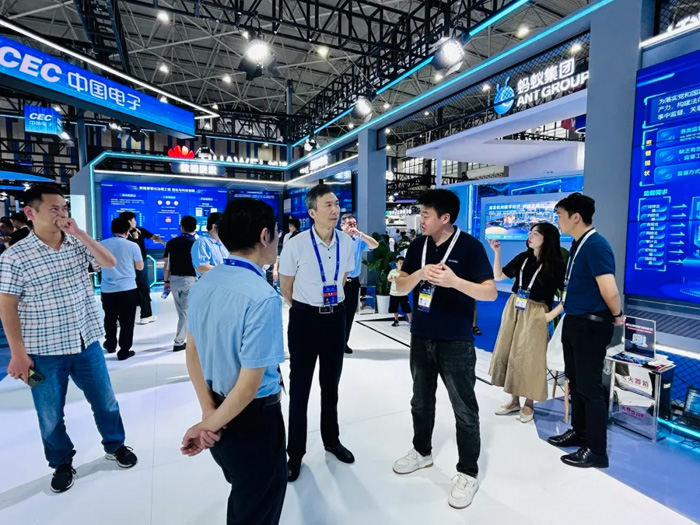 為向領(lǐng)導(dǎo)嘉賓切實展示視訊能力方案及效果,此次博覽會上,小魚易連攜新一代融合視頻會議整體解決方案亮相中國電子集團展臺,以“SVC+AVC”雙引擎先進架構(gòu)為基礎(chǔ),向嘉賓呈現(xiàn)了全能型視頻平臺、雙引擎硬件MCU、全場景視頻會議終端、泛業(yè)務(wù)開發(fā)底座、自研AI助手/數(shù)字人/VR視頻等全棧視頻會議產(chǎn)品,以流暢高清的實時互動能力、創(chuàng)新性的業(yè)務(wù)融合能力、國產(chǎn)化的安全屬性,獲得現(xiàn)場領(lǐng)導(dǎo)的高度認可。