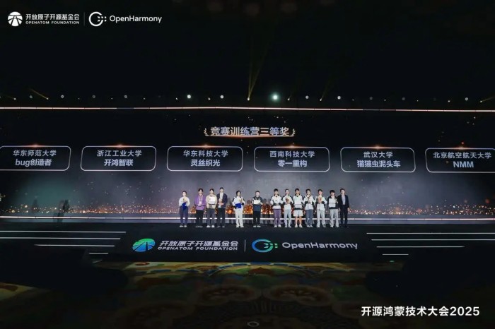 來自華東師范大學(xué)“bug創(chuàng)造者”、浙江工業(yè)大學(xué)“開鴻智聯(lián)”、華東科技大學(xué)“靈絲織光”、西南科技大學(xué)“零一重構(gòu)”、武漢大學(xué)“貓貓蟲泥頭車”,以及北京航空航天大學(xué)“NMM”等團(tuán)隊(duì),憑借在弱網(wǎng)優(yōu)化、智能家居、編譯器優(yōu)化和音樂應(yīng)用等方向的探索,收獲了本屆競賽訓(xùn)練營的三等獎(jiǎng)。