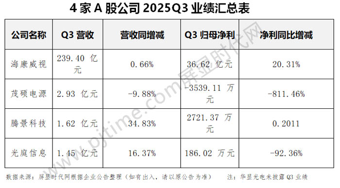 近日,?低、華顯光電、騰景科技、茂碩電源、光庭信息5家LED、商顯、車載企業(yè)發(fā)布2025年三季報(bào)。從5企業(yè)績(jī)看,2025 年第三季度,科技制造及電子信息領(lǐng)域業(yè)績(jī)分化態(tài)勢(shì)凸顯,韌性與挑戰(zhàn)交織的特征格外鮮明。