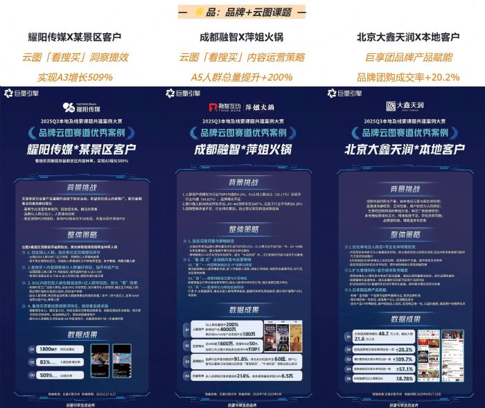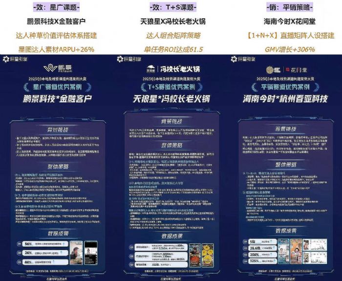 巨量引擎2025Q3本地&線(xiàn)索業(yè)務(wù)場(chǎng)景課題共建,根據(jù)年度策略導(dǎo)向設(shè)置了「品」、「效-T+S & 星廣」、「銷(xiāo)」和「智」四大專(zhuān)題 & 五大課題,公開(kāi)招募共105家代理進(jìn)行了課題報(bào)名,最終遴選45家代理入圍進(jìn)行課題共建,本期共產(chǎn)出了36則有效案例。為保障公平性原則,本次課題共建案例評(píng)選采用交叉評(píng)分,綜合評(píng)估投放策略、產(chǎn)品應(yīng)用、生意效果和行業(yè)方法,最終評(píng)選出積分榜top3及15則優(yōu)秀案例。