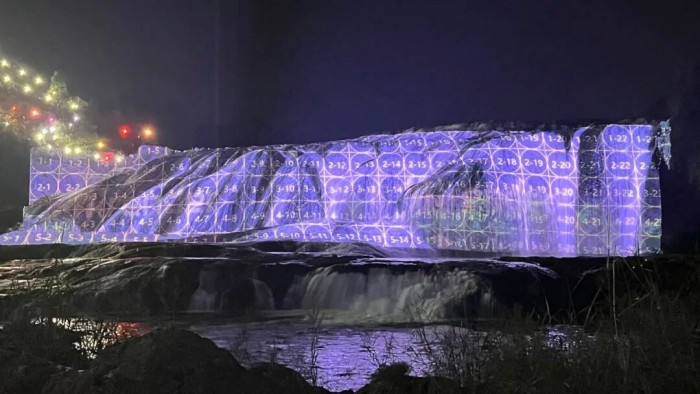 7 臺(tái)激光投影機(jī)將 56 米瀑布