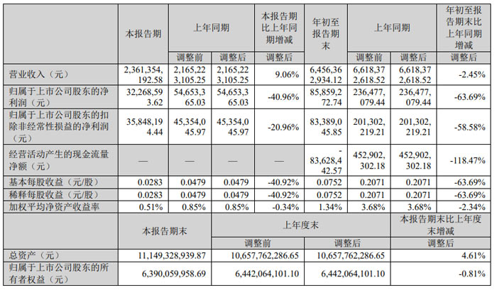 年初至報(bào)告期末(1-9 月):累計(jì)營業(yè)收入達(dá) 25.85 億元,同比增幅 17.07%;累計(jì)歸母凈利潤 2.11 億元,同比下降 7.66%;扣非后凈利潤 1.37 億元,同比下降 13.83%。