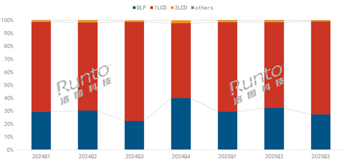 2024-2025Q3 中國(guó)智能投影線上市場(chǎng)分技術(shù)銷(xiāo)量結(jié)構(gòu)